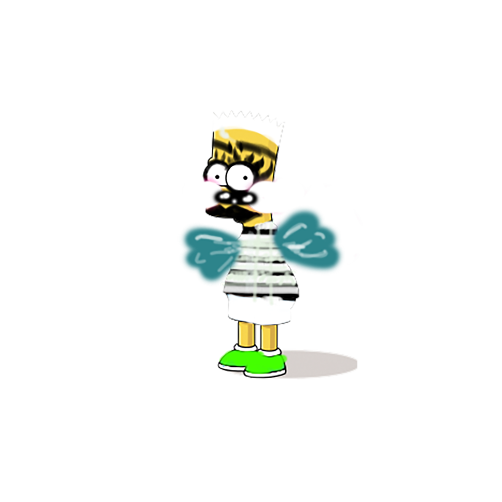 In this piece. We see a Bart. He covers his nose to mask the smell. He points to the source. It says a lot about us. We should all be nicer to bart or. suffer the consequenc