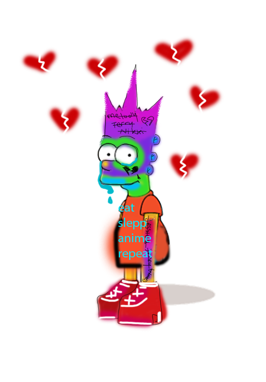 The Bartsona is the pinnacle of modern artwork. Everything ever drawn, sculpted, and written about all led up to this art form. Society has peaked as as a society. The burden of blindness is being lifted; I can see past the Fog. Hopefully, by the end of this exhibition, you can too, even as it draws ever nearer.