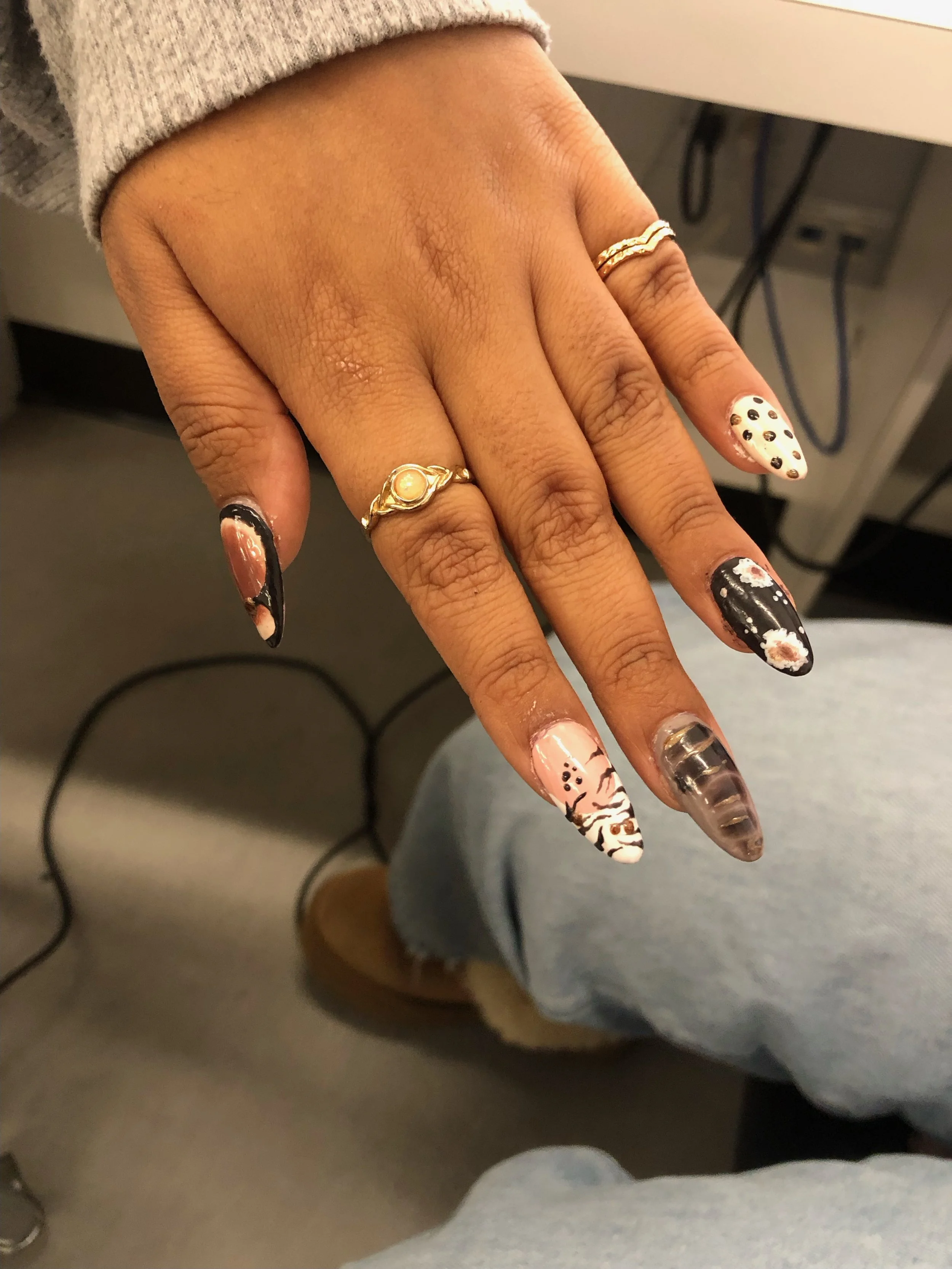 “I made them for a friend because she really likes more grunge designs so I did my best to encapsulate that vibe! I added studs and intricate designs to further enhance the type of nails she wanted!”